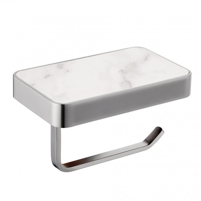 Бумагодержатель с полкой для телефона ABBER Westen AA1730SP сатин 5 лет Германия подвесной нержавеющая сталь, керамика сатин современный