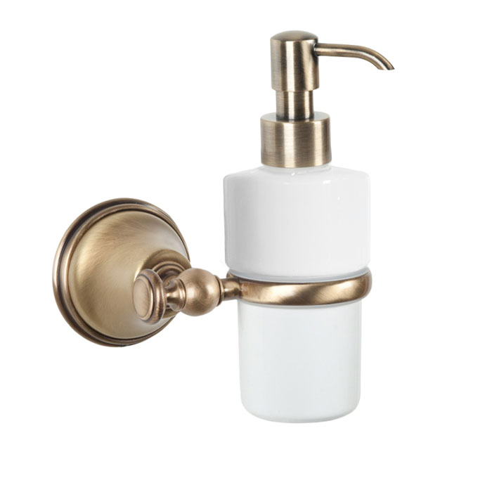Дозатор TW collection HARMONY TWHA108br Бронза TW Harmony 108, подвесной дозатор для ж/мыла, керамический (белый), цвет держателя: бронза