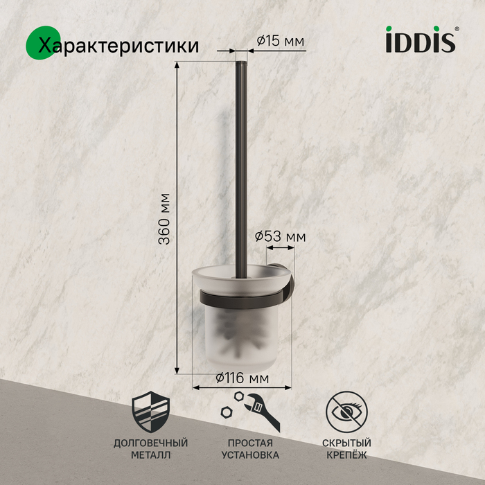 Ерш, черный матовый, матовое стекло, сплав металлов, Sena, IDDIS, SENSBG0i47 Подвесной ёрш Sena с колбой из матового белого стекла в держателе чёрного матового цвета – доступное функциональное решение для современной ванной комнаты.
