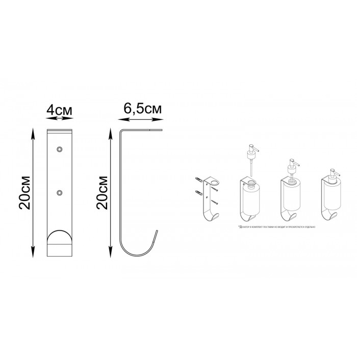 Держатель для дозатора с крючком, хром, Fixsen Practica FX-800B