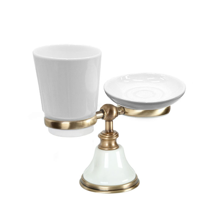 Мыльница TW collection HARMONY TWHA141bi/br Бронза TW Harmony 141, настольный держатель с мыльницей и стаканом, керамика (бел), цвет: белый/бронза