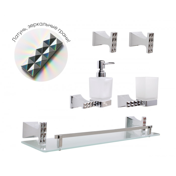 Набор аксессуаров для ванной комнаты ГРАНИ 400900 хром Bronze de Luxe 400900 современный латунь, керамика хром глянцевая полка, дозатор, держатель туалетной бумаги, крючки 2шт. ИТАЛИЯ