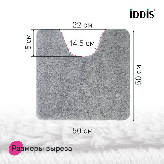 Коврик для ванной комнаты с вырезом, 50х50, микрофибра, серый, IDDIS, BTLT02Mi12