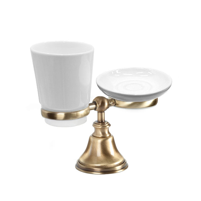 TW collection HARMONY TWHA141br Бронза TW Harmony 141, настольный держатель с мыльницей и стаканом, керамика (бел), цвет: бронза