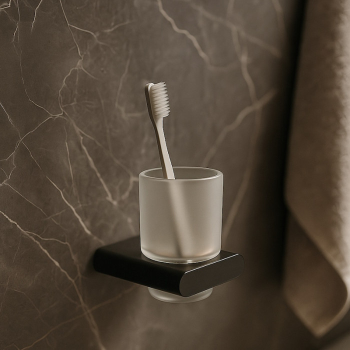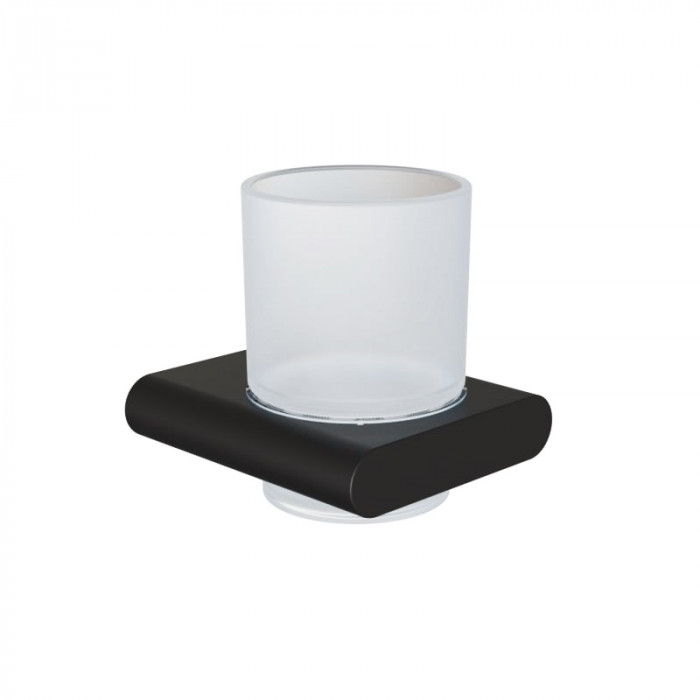 Стакан для ванной комнаты Knotlor SC101BL черный матовый Современный подвесной стакан OVAL в матовом черном цвете с матовым стеклом. Удобный настенный монтаж освобождает пространство, а надежный сплав ZAMAK с антиследовым покрытием сохраняет безупречный вид. Китай 5 лет 7930139832643
