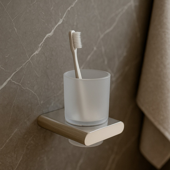 Стакан для ванной комнаты Knotlor SC101C хром Подвесной стакан OVAL в хроме с матовым стеклом — стильное и практичное решение для ванной. Крепление на стену экономит место на столешнице, а сплав ZAMAK с антиследовым покрытием гарантирует долговечность и легкий уход. Китай 5 лет 7930139832636