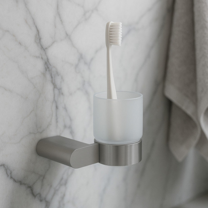 Стакан для ванной комнаты Knotlor SC102BS сатин матовый Подвесной стакан BLISS из матовой стали с матовым стеклом сочетает минимализм и практичность. Настенный монтаж экономит место, а нержавеющая сталь SUS 304 с антиследовым покрытием обеспечивает долговечность. Китай 5 лет 7930139833329