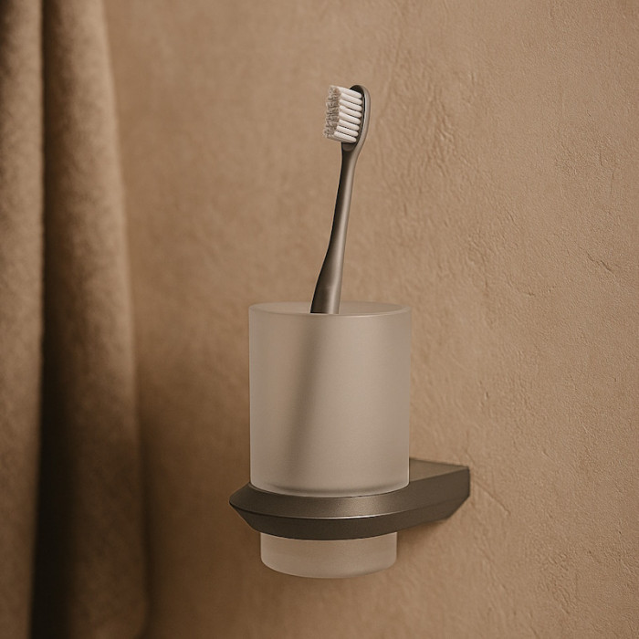 Стакан для ванной комнаты Knotlor SC103GM оружейная сталь матовый Подвесной стакан SPACE с отделкой «оружейная сталь» и матовым стеклом. Настенный монтаж делает интерьер аккуратным, сплав ZAMAK + SUS-201 и антиследовое покрытие гарантируют надежность и легкость ухода. Китай 5 лет 7930139833688