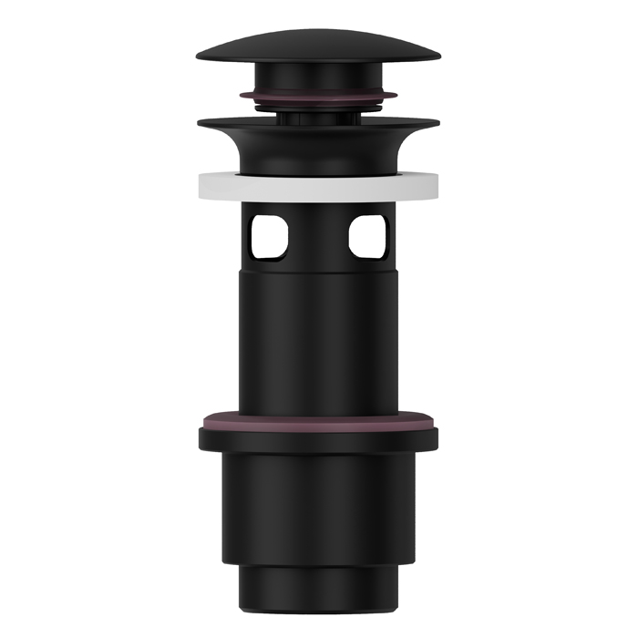 Донный клапан Newform Technical Accessories 232.01.093 Черный матовый Newform Донный клапан " клик-клак" 1"1/4, для раковины с переливом , Н min 65 max 85 мм, цвет: черный матовый