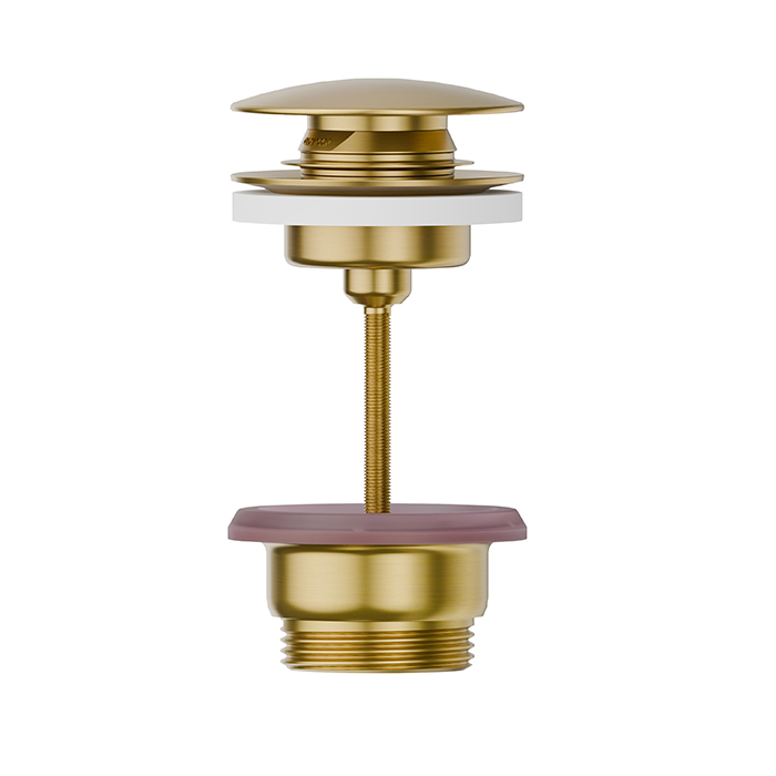 Донный клапан Newform X-Steel 316 24686.59.097 Золото Newform X-Steel 316 Донный клапан нажимной “Stop&Go”, для раковин с/без перелива, монтажный размер: 15-67 мм цвет: PVD Brushed gold