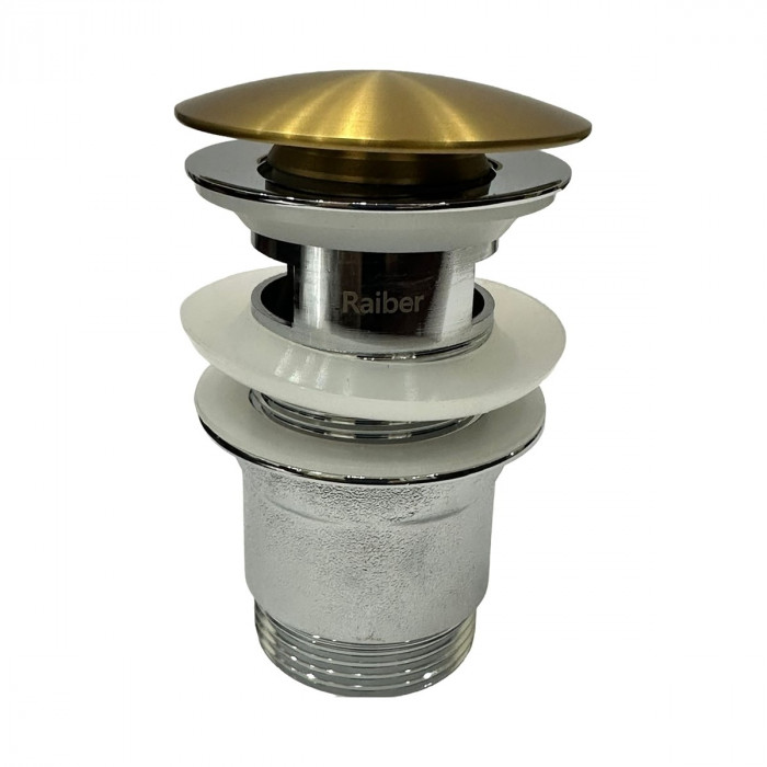 Донный клапан с переливом для раковины Raiber RPG-50, матовое золото