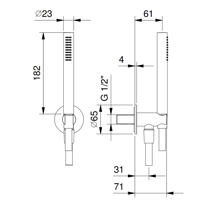 Fantini AA/27 81 93 8125 Нержавейка FANTINI AA/27 Душевой гарнитур с настенным держателем с подводом воды, ручным душем и шлангом 1500 мм., отделка матовая натуральная сталь