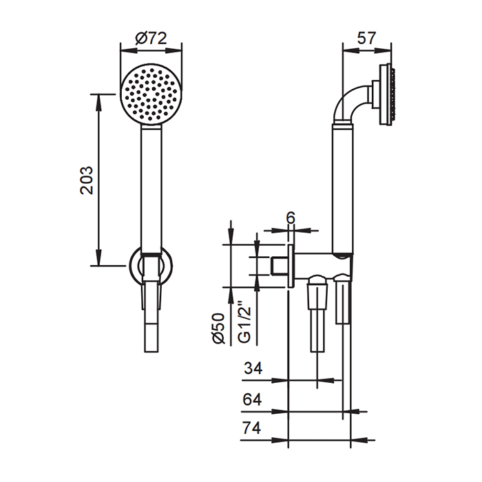 Душевой гарнитур Fantini Icona Classic 53 02 R043 Хром Fantini Icona Classic Ручная лейка со шлангом 1500мм и держателем, впуск 1/2'', цвет хром