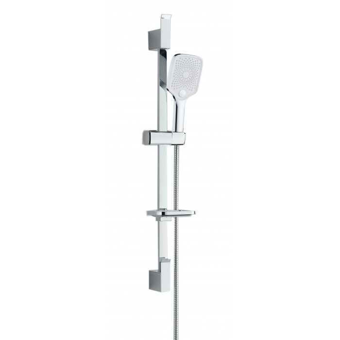 Душевой гарнитур SSS1303SQ ESKO Россия Прямоугольная стойка высотой: 720мм и толщиной 25х10мм. Широкая ручная лейка 130х105мм с 3 режимами и кнопочным переключателем. Метеллический шланг 1,5м. Цвет: хром Комплектация (текст): стойка, шланг , ручной душ, монтажный комплект Срок гарантии на аксессуары и комплектующие: 5 Срок службы (лет): 10