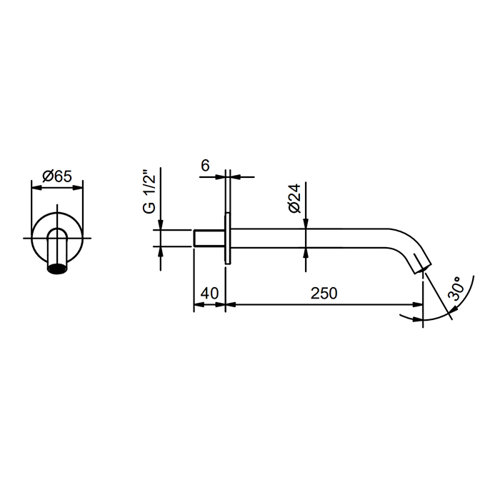 Излив Fantini Nostromo 50 13 8431 Черный матовый FANTINI NOSTROMO Излив смесителя для раковины 250 мм., настенный, цвет черный матовый