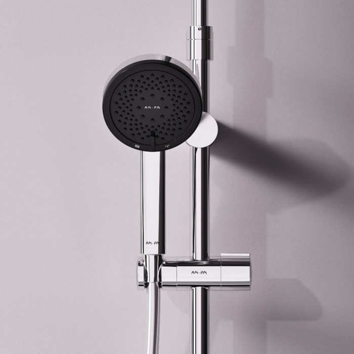 Коллекция Above играет с пропорциями, создавая ощущение простора и лёгкости. Тонкие линии и выверенные объёмы визуально «расширяют» пространство. Ручной душ разработан немецким in-house агентством AM.PM и отражает философию коллекции — максимум визуального эффекта без лишних деталей.