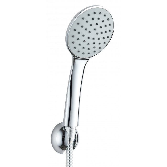 Набор 3 в 1 с ручным душем VS100 VODA Россия Состоит из ручной лейки, шланга и держателя. Ручной душ, диаметр 100 мм. Душевой шланг силиконовый в металлической оплетке с 1500 мм 1/2" x 1/2". Функция против перекручивания. Хромированное покрытие поверхности. Система Self-Clean Device против известковых отложений. Внутренний охлаждающий канал для продолжительного срока службы. Усиленный силикон лейки, устойчив к царапинам и известковым налетам, легко чистится. Может использоваться с проточным водонагревателем. Минимальное давление 1,0 бар. Расход воды 9,5 л/мин Цвет: хром