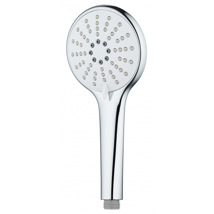 Ручной душ 3 реж. SSP753 ESKO Россия ABS пластик Диаметр: 110мм Кол-во режимов: 3 (рассеивающий + гидромассаж) Корпус: ABS-пластик, хром. Спец.функции: Форсунки Self-Clean Device, Eco system Цвет: хром