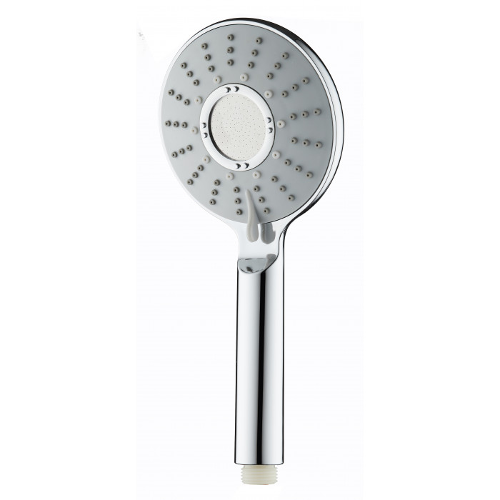 Ручной душ 3 режима диаметр 115 VSP07 VODA Россия ABS-пластик Диаметр: 115 мм Кол-во режимов: 3 режима (рассеивающий) Корпус: ABS-пластик, хром. Спец.функции: Форсунки Self-Clean Device, Eco system Цвет: хром