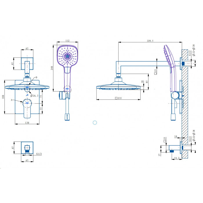 Диаметр верхнего душа: 235 мм