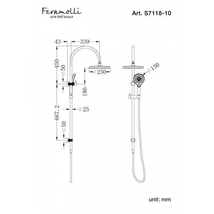 1) Душевая система со скрытым подключением воды G1/2, Feramolli Sole S7118-10CN