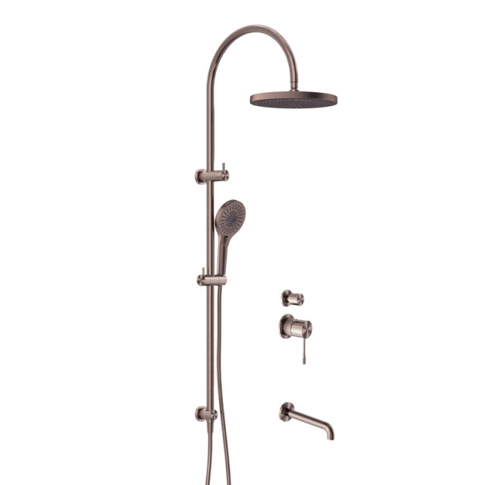 Душевая система со скрытым подключением воды G1/2 + смеситель для душа встраиваемый + излив, Feramolli Sole SBB10, медь светлая Комплект для ванны и душа Feramolli Sole SBB10 включает в себя: