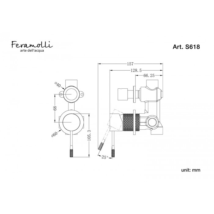 2) Встраиваемый смеситель для ванны/душа на 2 потока Feramolli S618CN: