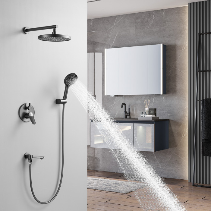 Душевая система встраиваемая Shevanik S4335T, оружейная сталь