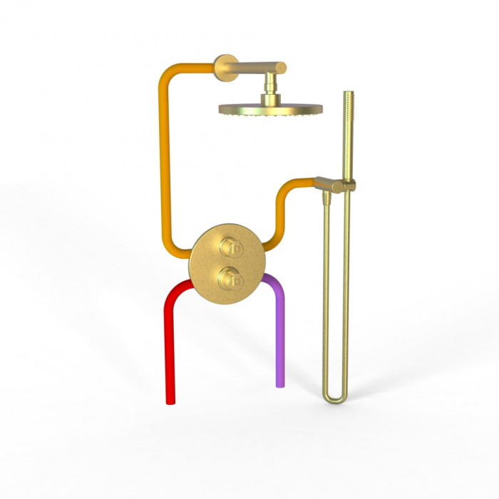 Комплект на 2 потребителя с термостатом Cox PAINI, для душа, брашированное золото PVD 78PJSET26911THSH смесители для душа цветные Италия