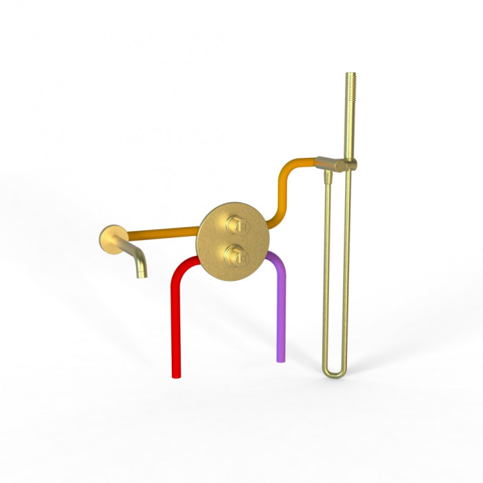 Комплект на 2 потребителя с термостатом Cox PAINI, для ванны с ручным душем, брашированное золото PVD 78PJSET26911THBATH смесители для ванны цветные Италия