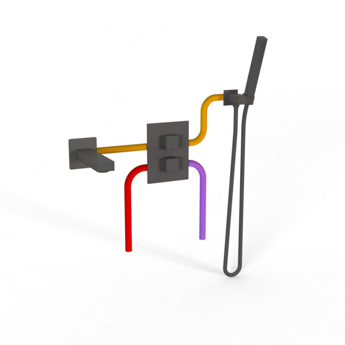 Комплект на 2 потребителя с термостатом Grazia PAINI, для ванны с ручным душем, черный брашированный PVD 21PZSET26911THBATH смесители для ванны цветные Италия