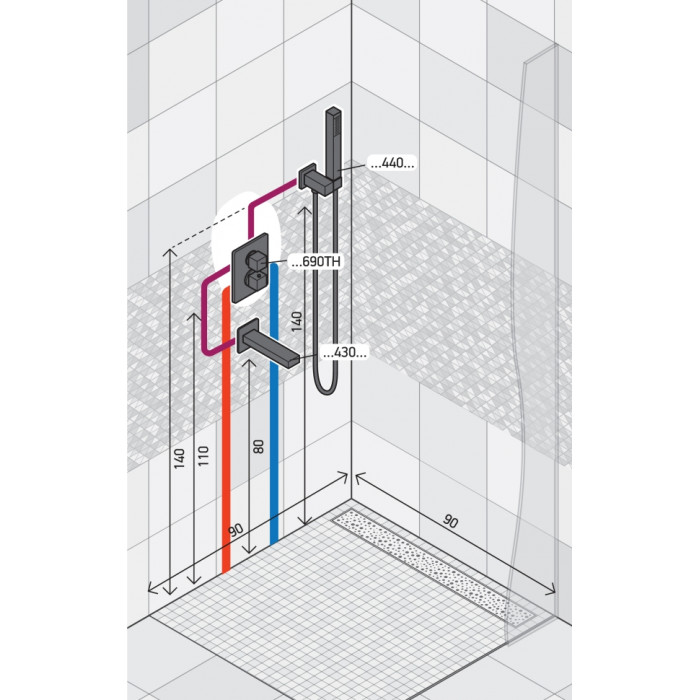 Комплект на 2 потребителя с термостатом Grazia PAINI, для ванны с ручным душем, хром 21CRSET26911THBATH комплекты встраиваемой сантехники Италия