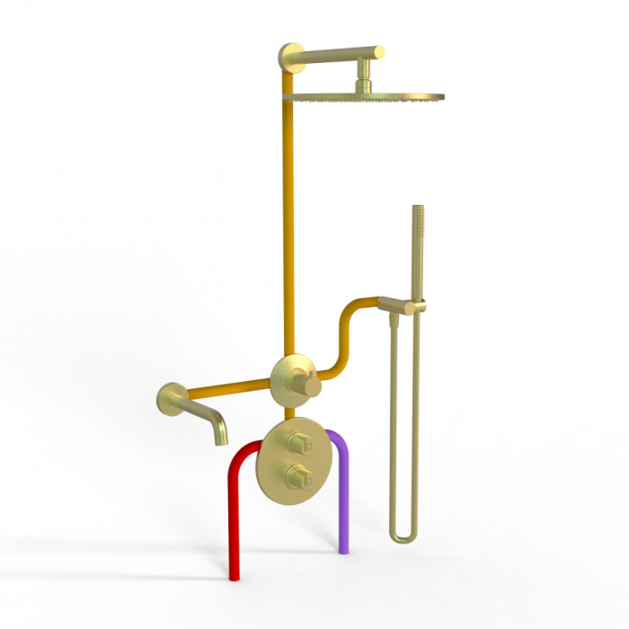Комплект на 3 потребителя с термостатом Cox PAINI, для ванны/душа, брашированное золото PVD 78PJSET36911THSHBATH смесители для ванны цветные Италия