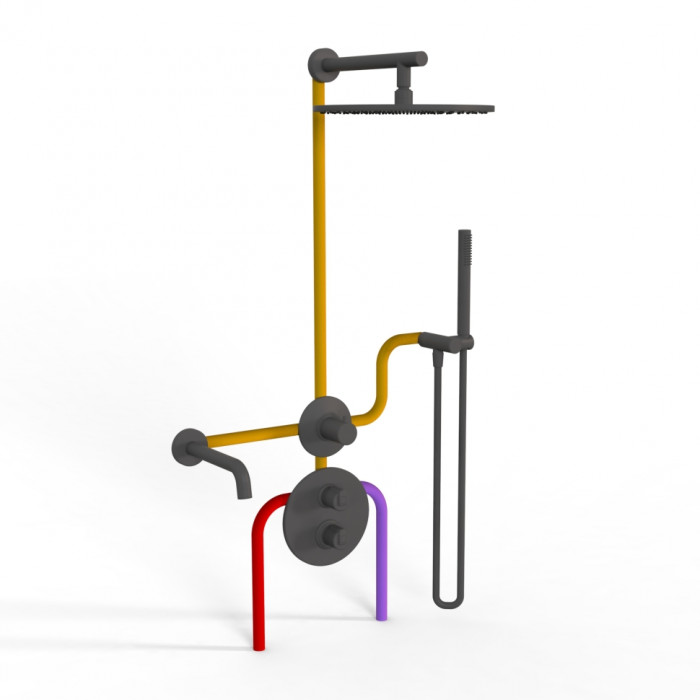 Комплект на 3 потребителя с термостатом Cox PAINI, для ванны/душа, черный брашированный PVD 78PZSET36911THSHBATH смесители для ванны цветные Италия