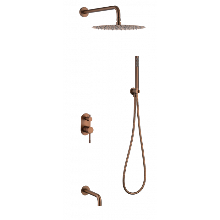 Смеситель встроенный + верхний+ ручной душ Uno BRUSHED BRONZE с изливом Boheme 464-2-BRB брашированная бронза