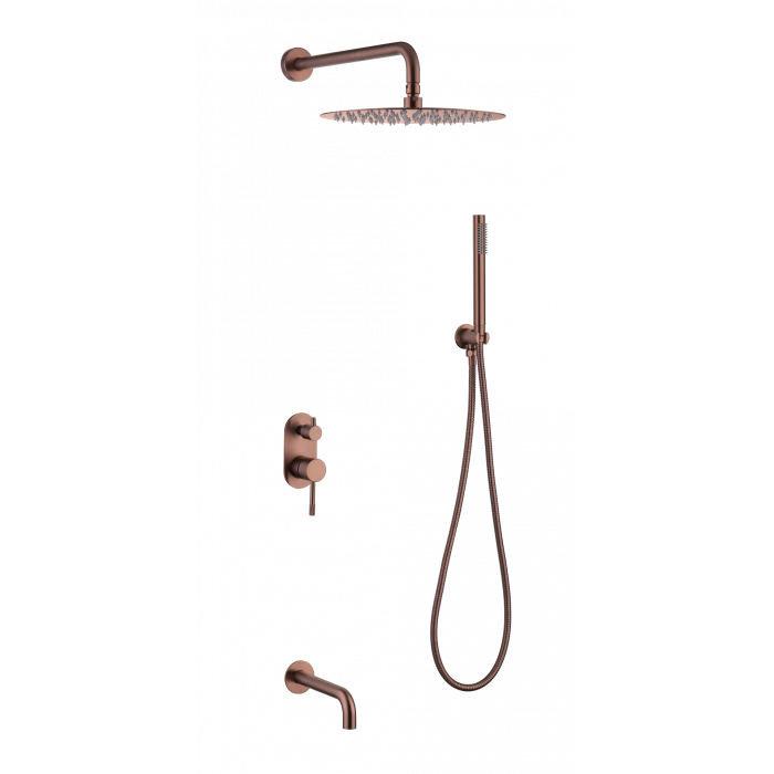 Смеситель встроенный + верхний+ ручной душ Uno COPPER BRUSHED с изливом Boheme 464-2-CB брашированная медь