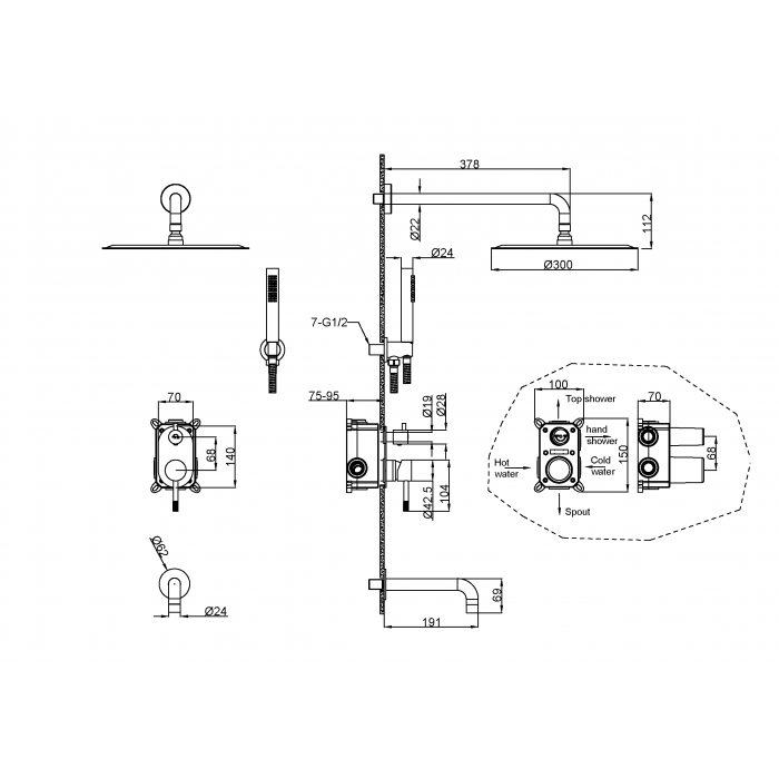Смеситель встроенный + верхний+ ручной душ Uno COPPER BRUSHED с изливом Boheme 464-2-CB брашированная медь 5 лет