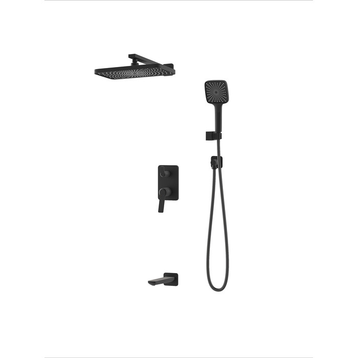 Встраиваемая система с тропическим, ручным душем и изливом, матовый черный, Parker, IDDIS, PARBL03i68 Встраиваемая душевая система Parker в чёрном матовом цвете – практичная и стильная, её дизайн сочетает в себе трендовый минимализм форм и четкие грани. Готовый комплект включает всё необходимое для создания уютного и функционального пространства: смеситель, верхняя лейка с кронштейном для тропического душа, настенный излив, большая ручная лейка с 3 режимами, душевой шланг 1,5 м и выход для подключения шланга с держателем.