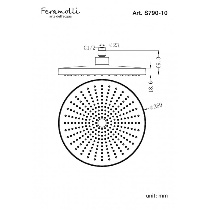 S790-10BB Тропический душ Feramolli Air 250мм, Технология Air Shower - увеличенное число форсунок на площадь Форсунки с антиизвестковым покрытием