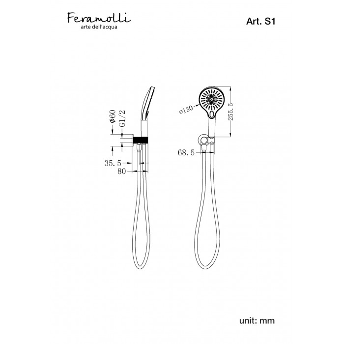 Встраиваемый комплект для душа Feramolli Sole SBB6, медь светлая Встраиваемый комплект для душа Feramolli S681BB+S765BB+S790-10BB+S203BB+S041BB+S030BB: