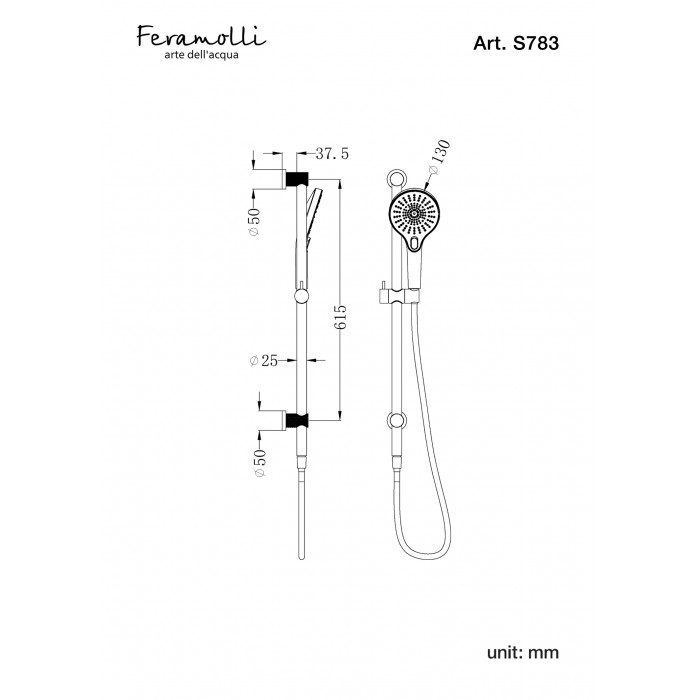 -Душевая штанга с внутренним подключением для воды G1/2