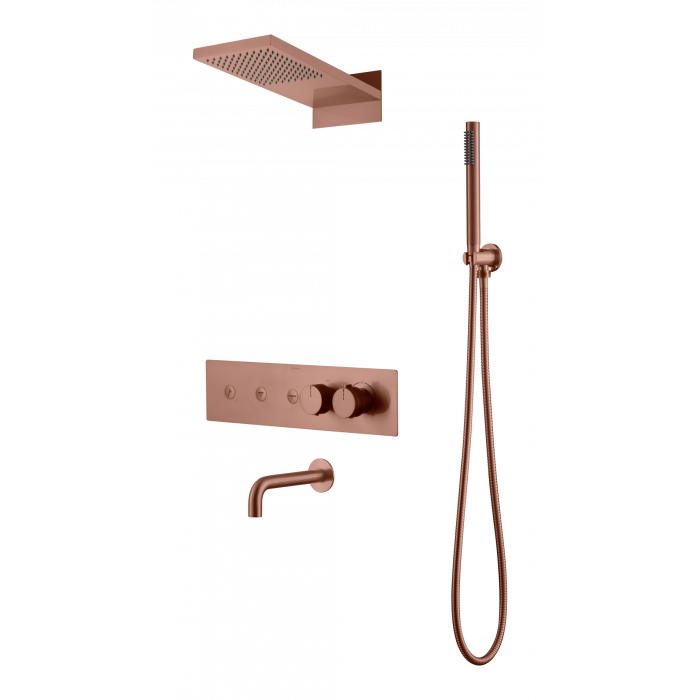 Встроенная душевая система FUSION с термостатом, трехпозиционная Copper Brushed с изливом Boheme 131-2-CB брашированная медь