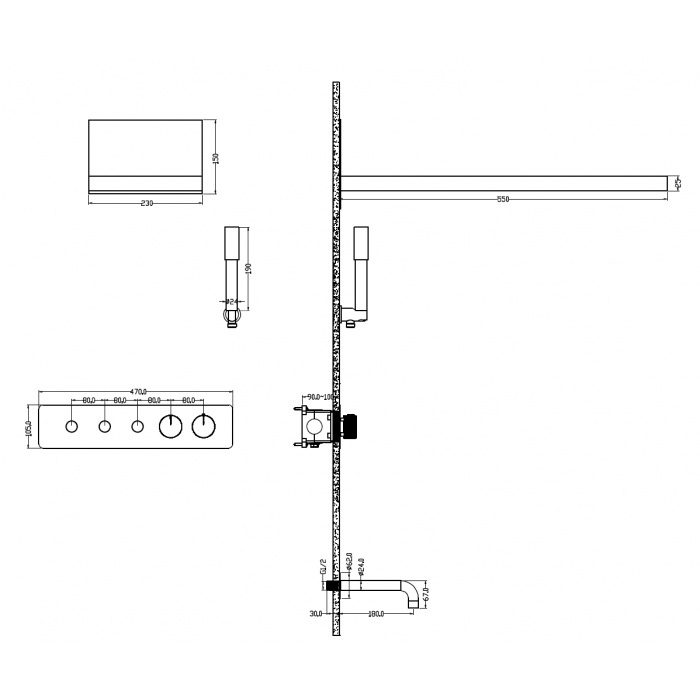 Встроенная душевая система FUSION с термостатом, трехпозиционная Copper Brushed с изливом Boheme 131-2-CB брашированная медь 5 лет