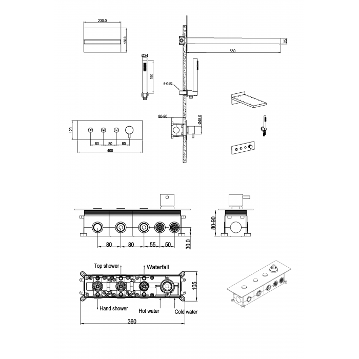 Встроенная душевая система FUSION, трехпозиционная BRUSHED BRONZE Boheme 130-BRB брашированная бронза