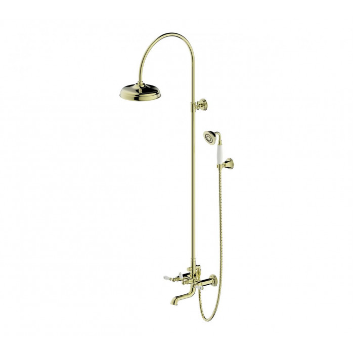 Душевая колонна со смесителем для ванны Bravat F65193BAF-A2-RUS Золото Германия Настенный Однорычажный Керамический картридж G1/2 Латунь 1-режимный