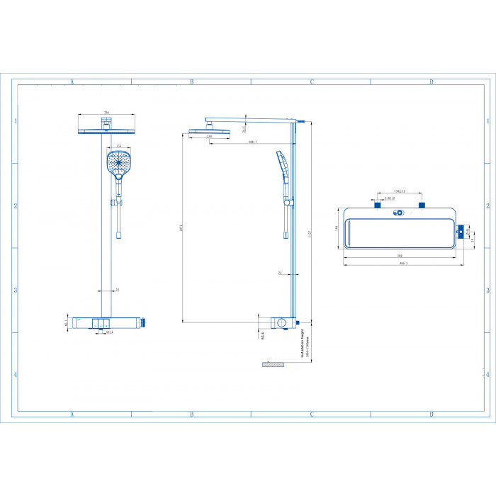 Душевая система Arrow AMG13GH872GG, 320*230 мм с термостатом, серый душ.стойка латунь 1 квадратная