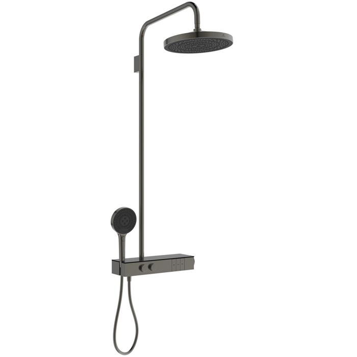 Душевая система Ideal Standard Solos A7882A5 Ideal Standard Ceratherm Solos Душевая стойка, термостат, верхний душ 30см, руч.душ 13см, шланг 175см, цвет: PVD Magnetic Grey