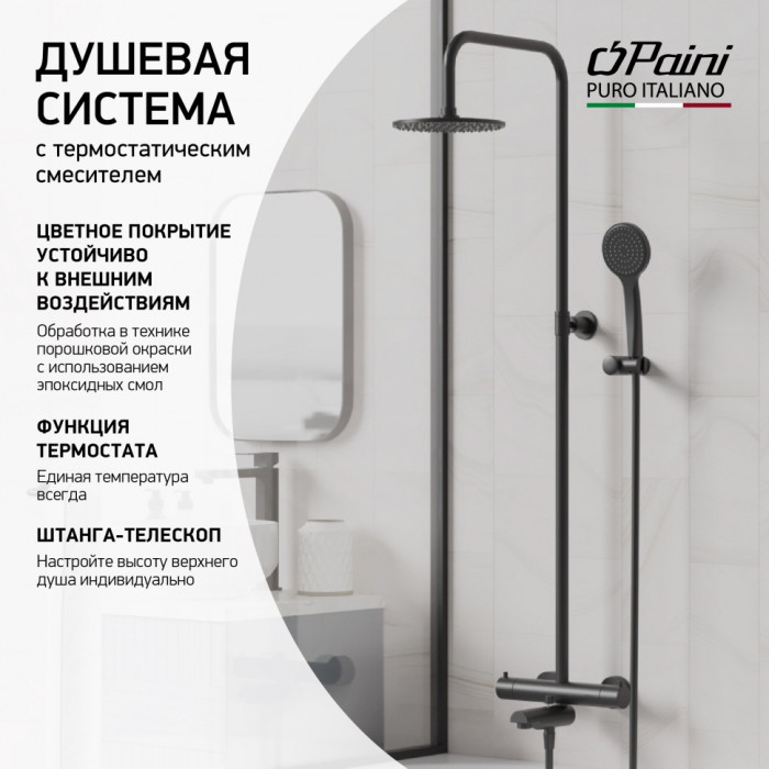 Душевая система PAINI COX с термостатом и изливом, черный (YO) 78YO687TH1KM душевая система Paini Италия