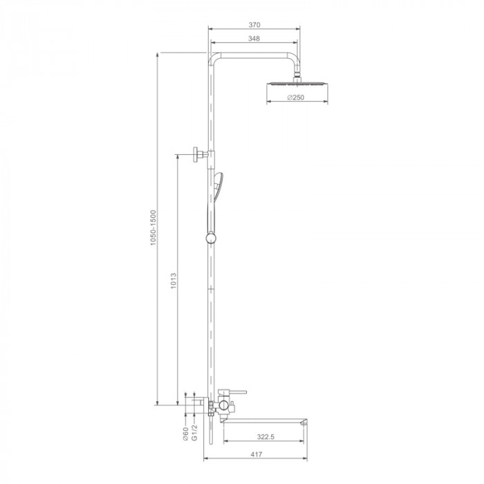 Верхний душ диаметром 250 мм регулируется по высоте благодаря телескопической штанге и по наклону с помощью встроенного шарнира, что обеспечивает максимальный комфорт и удобство использования. Самоочищающиеся силиконовые форсунки предотвращают образование известкового налета и сохраняют чистоту и силу потока воды.