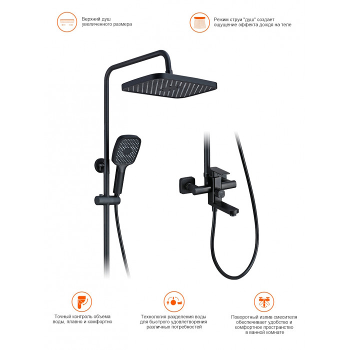 Душевая система Prohanss P60.24.06, черный ПВХ Душевая система с тропическим душем, смесителем, поворотным изливом и ручной лейкой Prohanss P60.24.06 - идеальное решение для вашей ванной комнаты. Изготовленная из высококачественных материалов, она гарантирует долговечность и надежность использования.